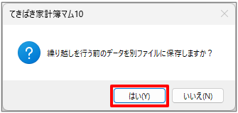 4.「繰り越しを行う前のデータを別ファイルに保存しますか?」で [はい] を選択してください。