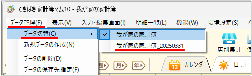 以上の操作で、2025年4月1日以降に利用するデータ[我が家の家計簿]と、操作時点のデータのコピー[我が家の家計簿_20250331](過去のデータ参照用)の2個のデータができます。